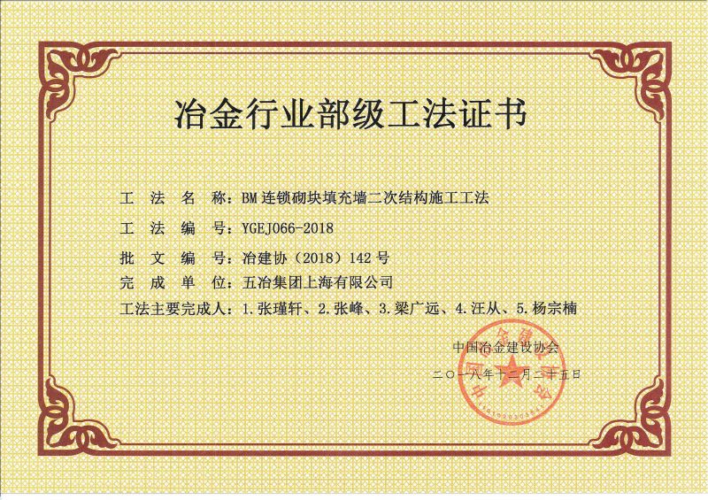 2018年部級(jí)工法