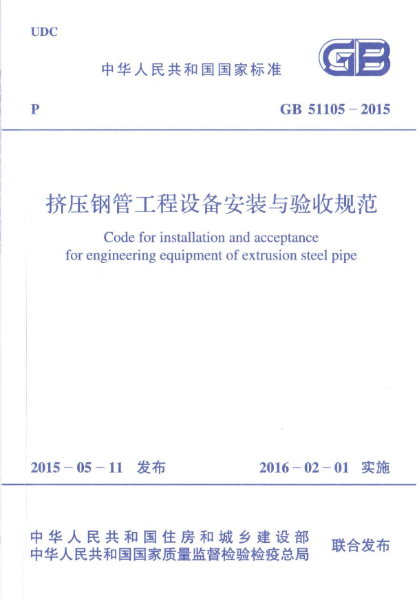 擠壓鋼管工程設(shè)備安裝與驗收規(guī)范GB51105-2015