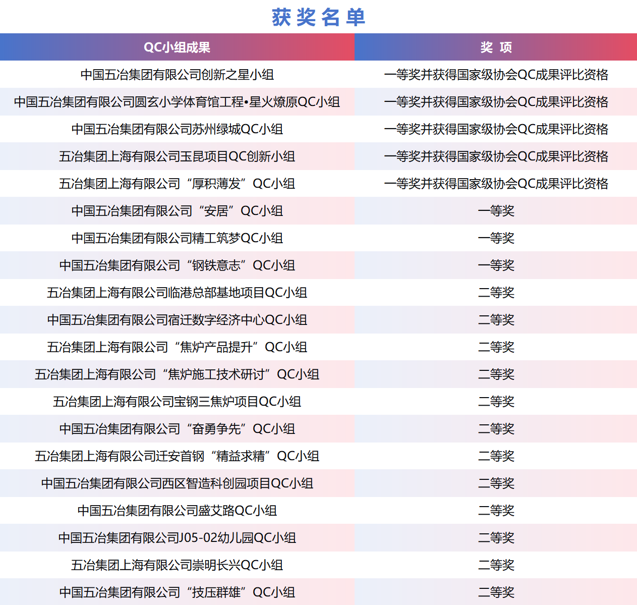 近日,在2025年度全國(guó)冶金建設(shè)行業(yè)質(zhì)量管理小組成果交流會(huì)上,公司申報(bào)的20項(xiàng)成果悉數(shù)獲獎(jiǎng),其中一等獎(jiǎng)8項(xiàng),二等獎(jiǎng)12項(xiàng),《提高地庫(kù)高分子卷材防水施工一次驗(yàn)收合格率》等5項(xiàng)QC成果獲得國(guó)家級(jí)協(xié)會(huì)QC成果評(píng)比資格。