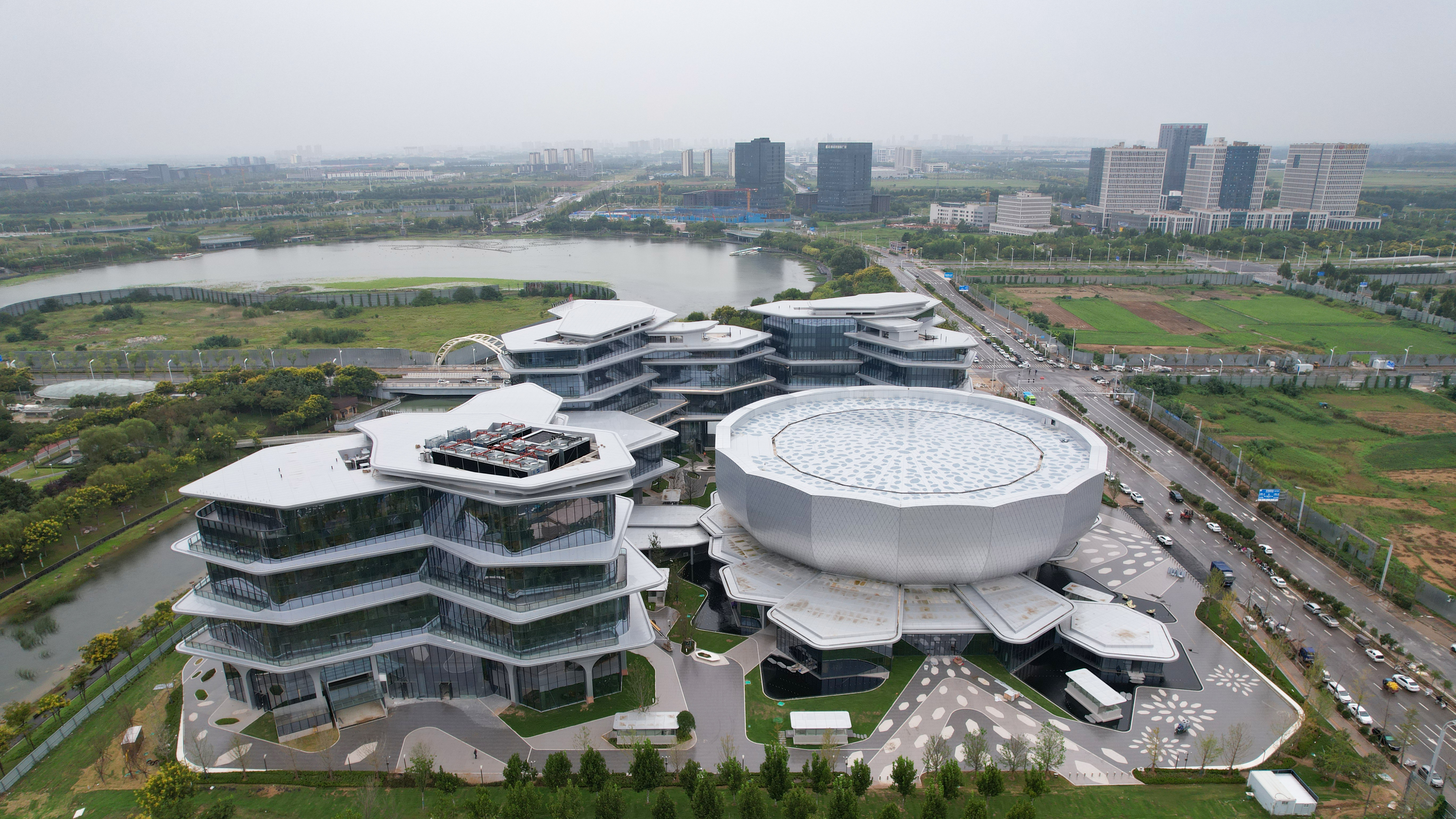 項(xiàng)目以國(guó)寶“蓮鶴方壺”為設(shè)計(jì)靈感,立足于博大精深的中華文明,乘上科技騰飛的翅膀,以“蓮”為意向, 形成以會(huì)議中心為“蓮心”, 酒店及多種功能為“蓮葉”, 向心匯聚、且各方綻放的建筑布局。抽象靈動(dòng)的花瓣,又如醫(yī)藥分子,層層疊加擴(kuò)散。